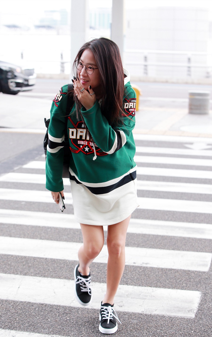 공개된 사진 속 소유는 오버사이즈 실루엣의 후드 원피스에 블랙 백팩과 스니커즈를 매치해 꾸민 듯 꾸미지 않은 세련된 공항패션을 선보였다. 특히 그녀는 다소 계절을 앞선 듯 길고 하얀 다리를 과감하게 드러냈지만 특유의 발랄함을 감출 수 없었다.