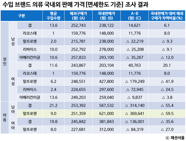 ‘랄프로렌’, ‘갭’ 등 국내 판매가 보다 싼 해외 직구