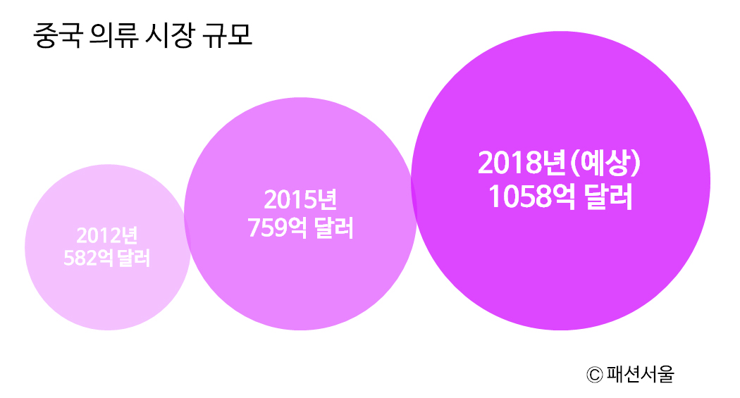 패션업체들이 국내 패션 시장의 위축으로 어려움을 겪자 거대 소비 시장인 중국 내수 시장에서 활로를 찾고 있는데 중국은 경기 침체에도 불구하고 패션 시장은 여전히 가파른 성장세를 보이고 있다. 이는 ‘K패션’에 대한 좋은 이미지와 지난해 12월 발효된 한·중 FTA(자유무역협정)의 체결로 국내 기업들의 중국 진출이 급물살을 타고 있는 것.