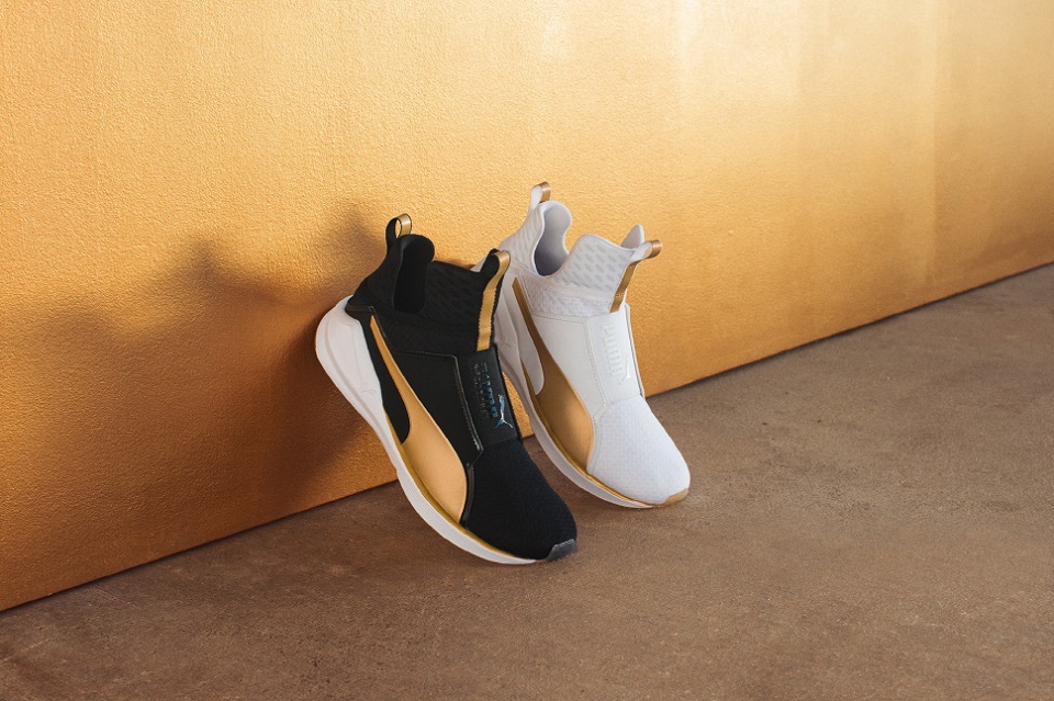 이번 컬렉션에서 눈에 띄는 제품은 할리우드 대표 패셔니스타인 카일리 제너(Kylie Jenner)가 홍보대사로 활동하는 푸마의 차세대 여성용 트레이닝화 ‘피어스(Fierce)’다. 메쉬 소재와 발목까지 올라오는 독특한 부츠 스타일로 지난 4월 출시이래 운동을 즐기는 트렌디한 여성들 사이에서 인기를 끌었던 ‘피어스(Fierce)’는 골드 색상의 폼스트립(Formstrip)과 설포로 더욱 유니크 하게 변해 고급스러운 애슬레저 룩 연출이 가능하다.