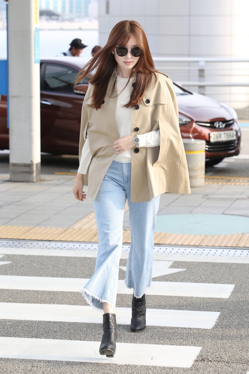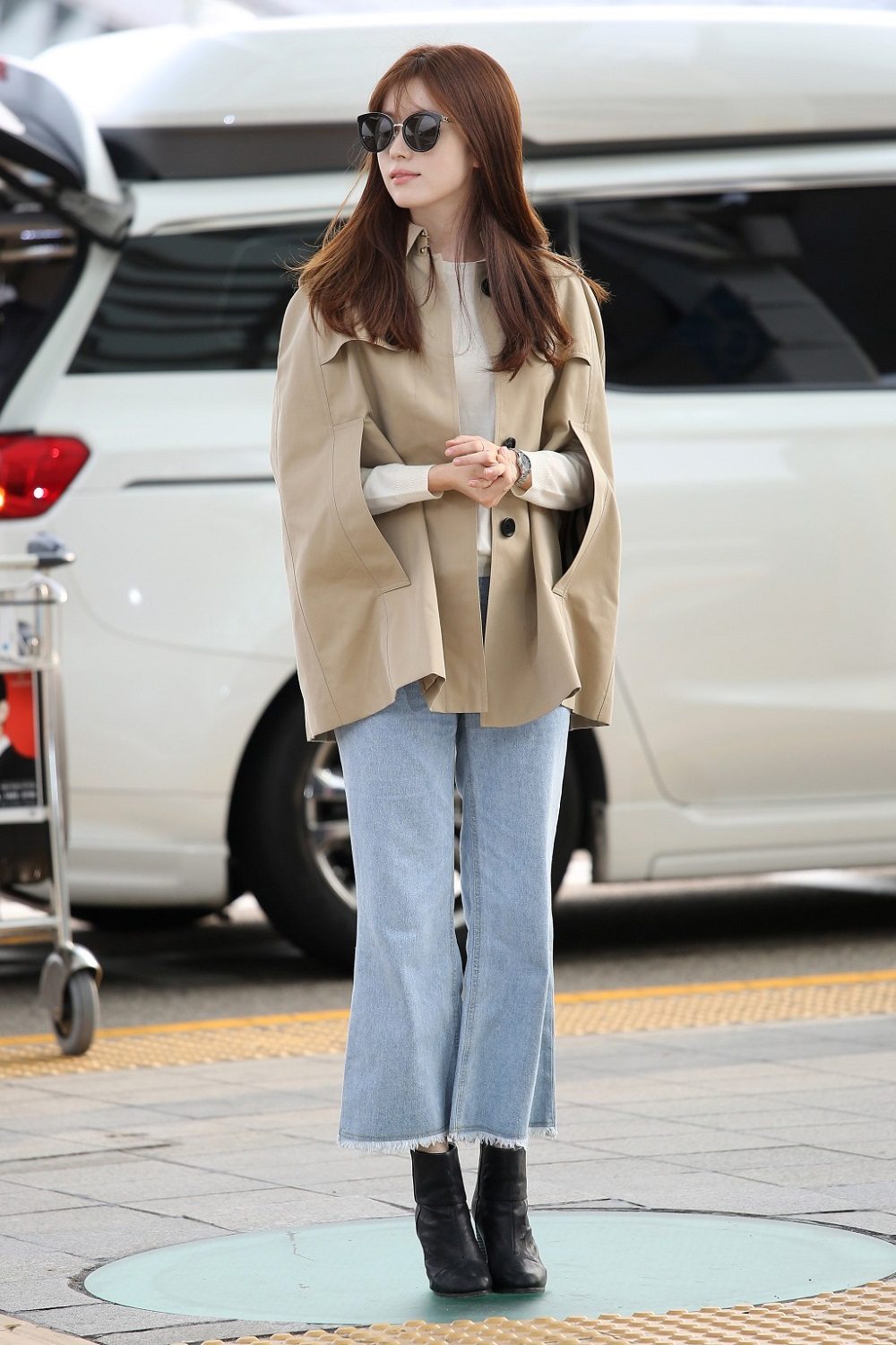 최근 인기리에 종영한 드라마 ‘W’에서 청순하면서도 센스있는 패션으로 화제가 되었던 한효주는 버버리의 화이트 스웨터와 버버리 트렌치 케이프를 밝은 컬러의 청바지와 매치해 편안하면서도 시크한 공항룩으로 눈길을 끌었다.