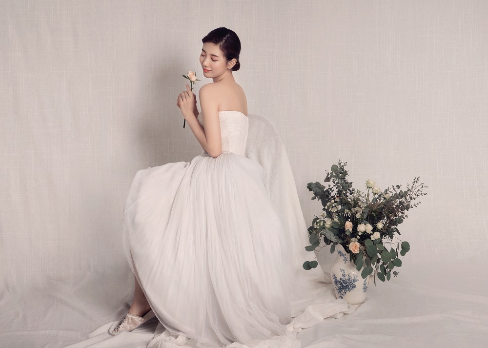수지는 수줍은 듯한 미소를 짓기도 하고, 무심한 듯 카메라를 응시하기도해 순수하면서도 여성스러운 매력을 뽐냈다. 또한 심플한 순백의 드레스와 세미업 헤어 스타일을 통해 그녀 특유의 깨끗하면서도 단아한 매력을 극대화 시켰으며 살짝 보이는 웨딩 슬리퍼로 기존 클리식한 웨딩 이미지에서 벗어나 트렌디하면서도 자유로운 프렌치 웨딩의 모습을 표현했다.