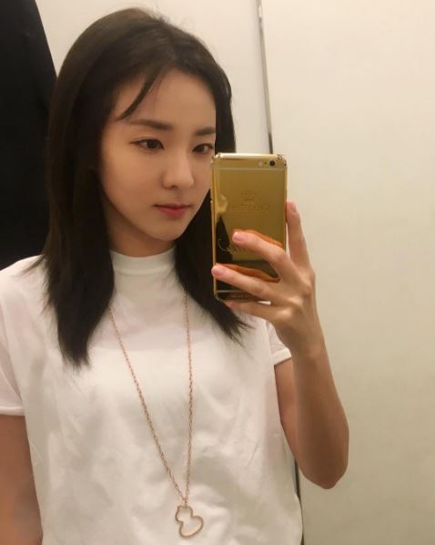 공개된 사진 속 산다라박은 방부제 미모를 자랑하듯 청순한 외모가 돋보이는 모습으로 거울 앞에서 셀카를 찍고 있다.