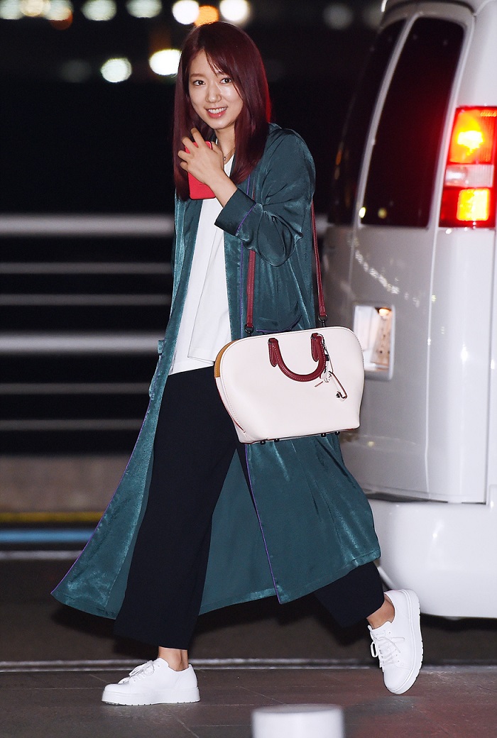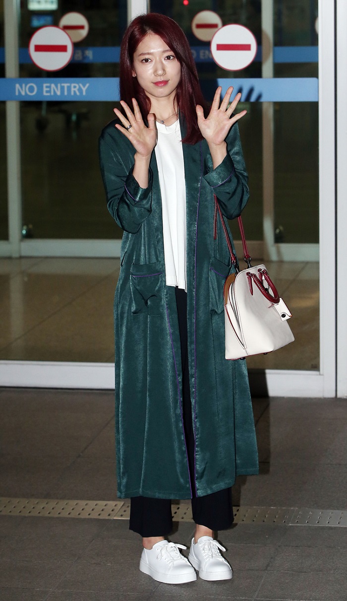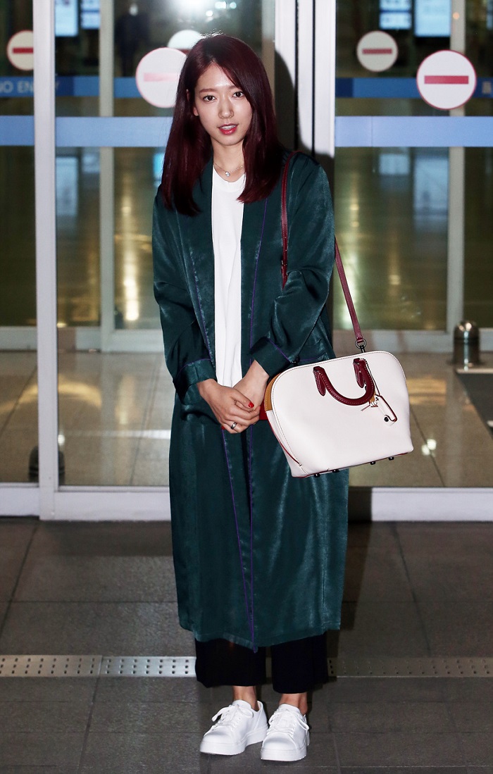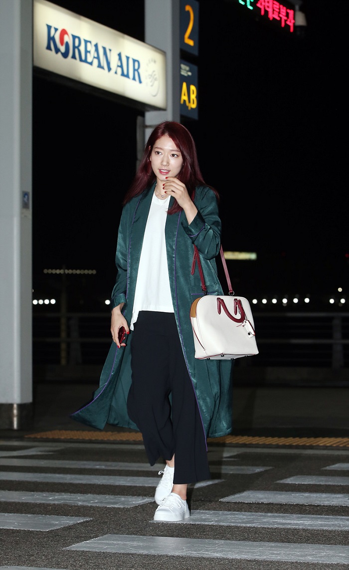이날 박신혜는 청초한 모습으로 등장, 수수한 패션에도 빛나는 자체발광 외모로 시선을 모았다. 밤 비행을 고려해 화이트 티셔츠와 블랙 슬랙스로 심플하면서도 코지한 스타일링을 선보였으며 딥 그린 컬러의 로브 가디건으로 포인트를 주는 패션센스를 발휘했다. 여기에 닥터마틴 화이트 스니커즈를 더해 깔끔하면서도 모던한 공항패션을 완성했다.