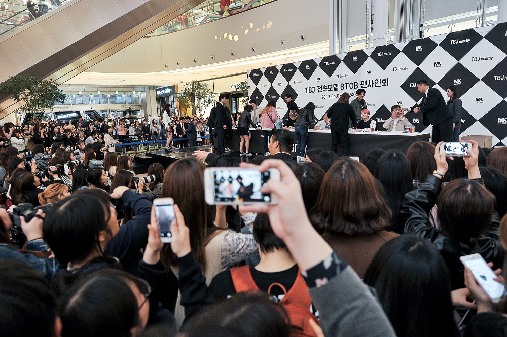 캐주얼 브랜드 TBJ가 7일 잠실 롯데월드몰 아트리움 광장에서 응모권 추첨을 통해 선발된 120여 명과 함께 ‘2017 TBJ X 비투비(BTOB) 팬사인회’를 진행했다.