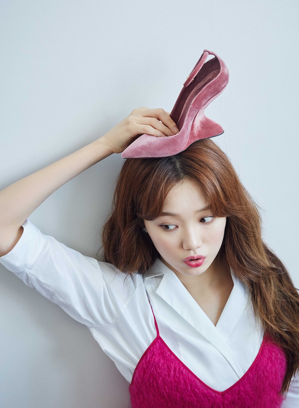 사전 공개된 티저 이미지 속 이성경은 페라가모의 컬러풀 한 슈즈들이 가득 놓인 방에 앉아 가녀린 자태로 특유의 싱그러운 꽃 미소를 지으며 보는 이를 설레게 하는 한편 특이한 굽 모양의 핑크색 슈즈를 머리 위에 얹는 등 장난끼 넘치는 발랄한 매력을 어필했다.
