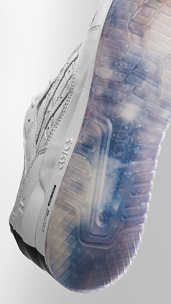 특히 유니크한 색감에 밤을 연상시키는 밑창이 특징이다. 독특한 반투명 고무 밑창은 갤러리의 주요 테마인 별모양 패턴을 모티브로 제작됐다.