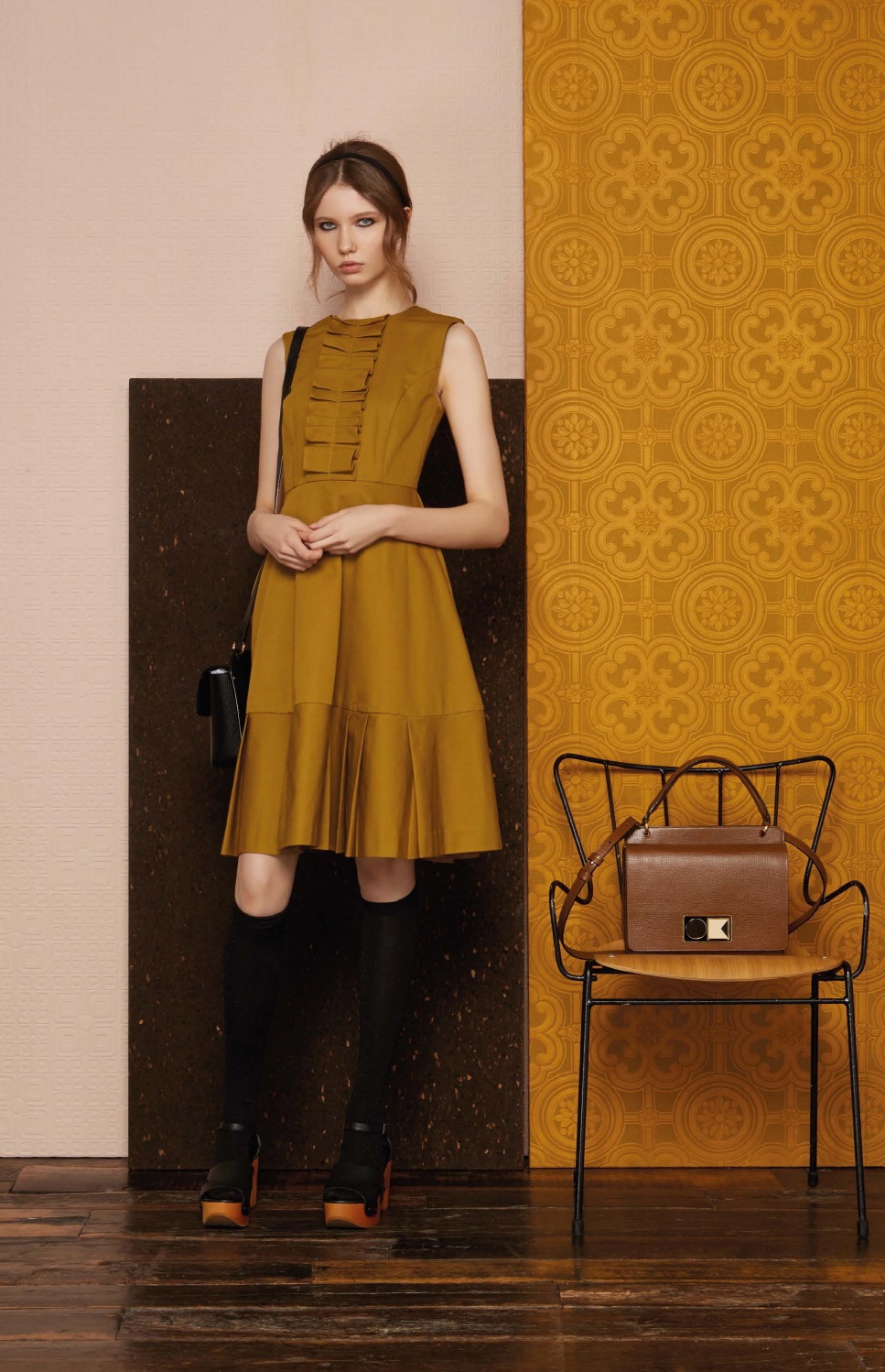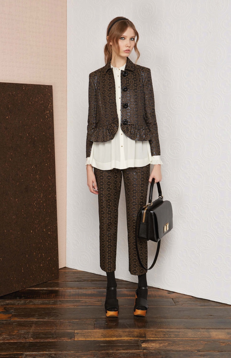 자연의 컬러를 중시하는 디자이너답게 페일 로즈, 올리브, 머스터드, 브라운 등을 컬렉션 메인 컬러로 사용해 가을에 어울리는 차분한 분위기를 선사한다. 실크 하보타이(Silk, Habotai), 플라워 체크 메탈릭자카드(Flower Check Metallic Jacquard), 코튼 오토만(Cotton Ottoman) 등 고급스러우면서도 유니크한 패브릭을 활용했으며 프릴 넥 벨티드 드레스(Frill Neck Belted Dress), 페플럼 헴 자켓(Peplum Hem Jacket), 버터플라이 인타르시아 니트(Butterfly Intarsia Knit) 등의 아이템으로 한층 감각적인 스타일을 완성했다.