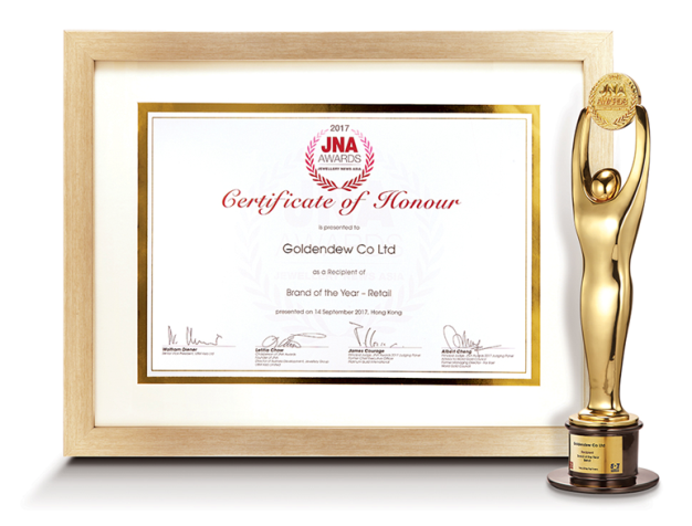 골든듀는 2015년에 450개 미만 매장을 보유하고 있는 아시아 국가 주얼리 브랜드 중에서 평가 받는 ‘올해의 소매상(Retailer of the year)‘ 부분에서도 최종 수상한 바 있으며 올해는 전체 브랜드부문에서 수상을 하여 이로서 두 번 수상의 영광을 안게 됐다.