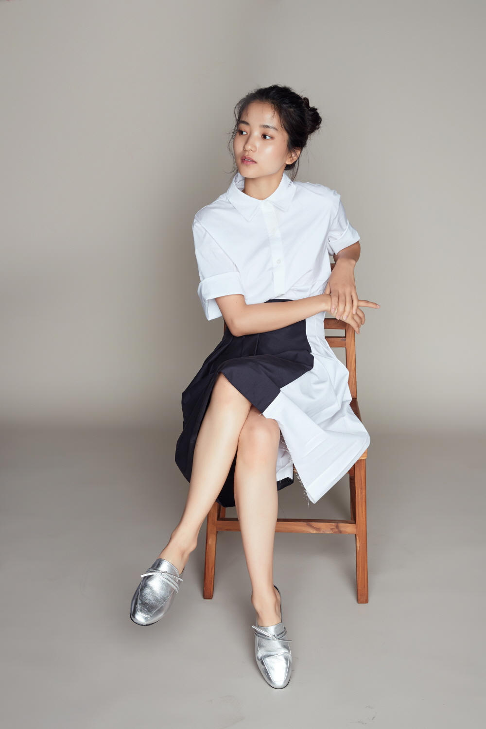여기에 메탈릭한 미러 광택감이 가미된 스니커즈라든지 리본 장식이 올라간 플랫 슈즈로 포인트를 더했다. 충무로 샛별다운 자연스러운 포즈와 섬세한 연기도 눈에 띄었다.