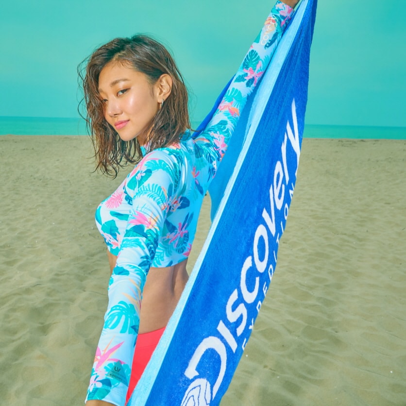 라이프스타일 리딩브랜드 디스커버리 익스페디션이 울창한 하와이의 플로럴과 잎사귀에서 영감을 받은 패턴의 여성 래쉬가드, 워터레깅스 등 비치웨어를 출시하며 모델 여연희와의 화보를 선보였다.