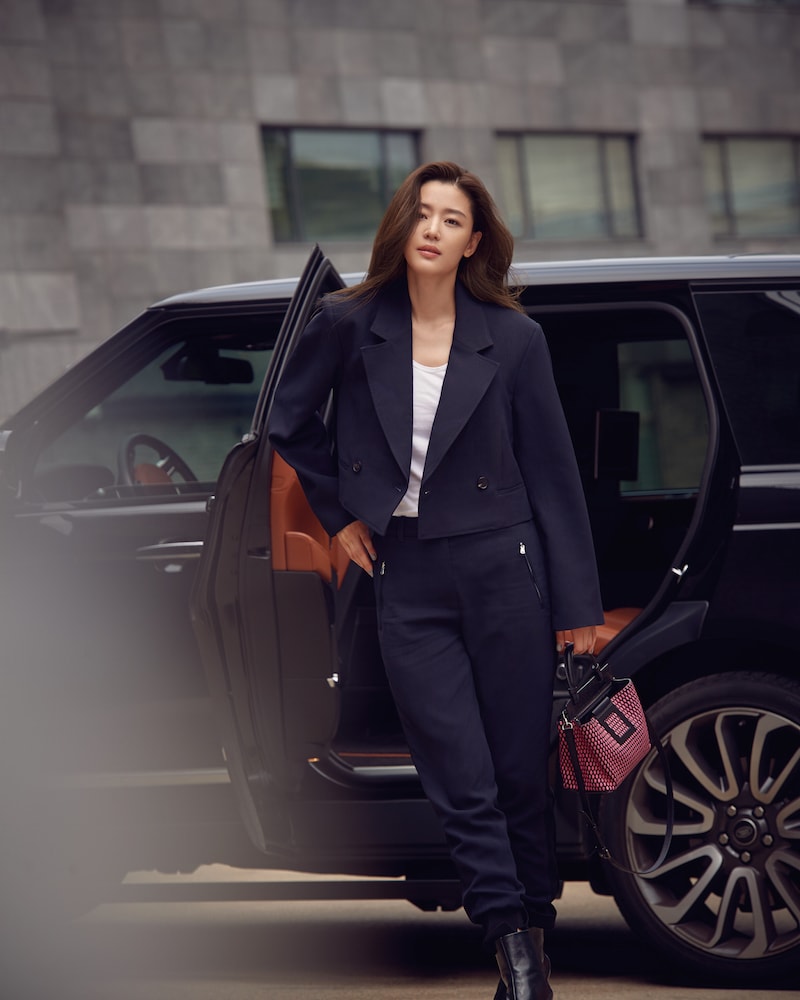 또한 전지현이 화보 촬영을 하러 SUV 차량에서 나오는 파파라치 컷은 전지현만이 자아낼 수 있는 슈퍼스타의 카리스마가 느껴진다. 네이비 수트와 핑크 컬러의 미니백으로 포인트를 준 스타일링 또한 인상적이다. 일상이 화보’ 라는 수식어를 증명이라도 하듯 시선을 뗄 수 없게 만드는 그녀만의 분위기는 감탄을 절로 자아낸다.