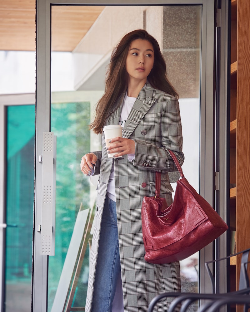 공개된 사진은 한 패션브랜드의 화보 촬영 중에 찍힌 파파라치 컷으로 전지현이 그레이컬러의 롱 재킷에 이번 시즌 트렌드 아이템인 버건디 컬러의 빅 백으로 포인트를 주어 패셔니스타 다운 모습을 보여주고 있다.