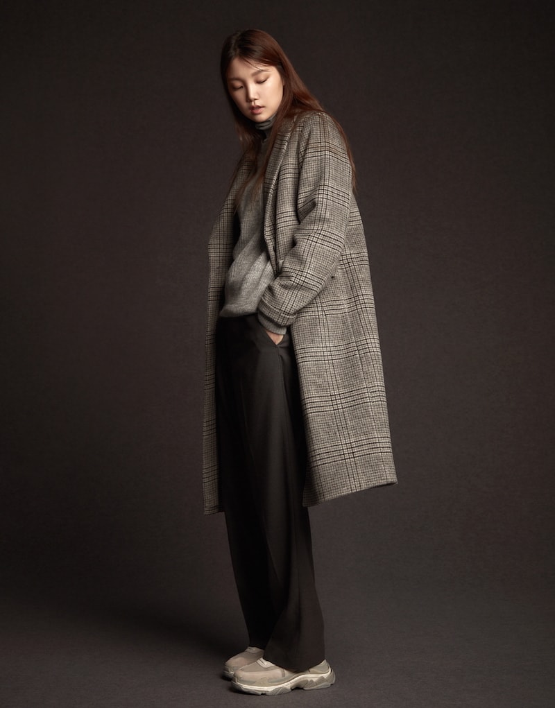 특히 그레이 체크 패턴이 돋보이는 고급스러운 코트와 군더더기 없이 깔끔하게 떨어지는 디자인이 특징인 ‘테르미니 코트’를 착용해 시크하면서도 스타일리시한 가을 아우터룩을 완벽하게 소화했다.