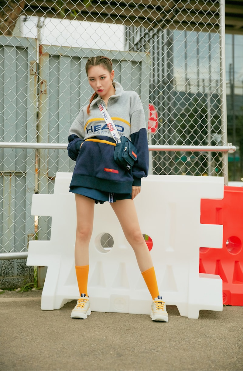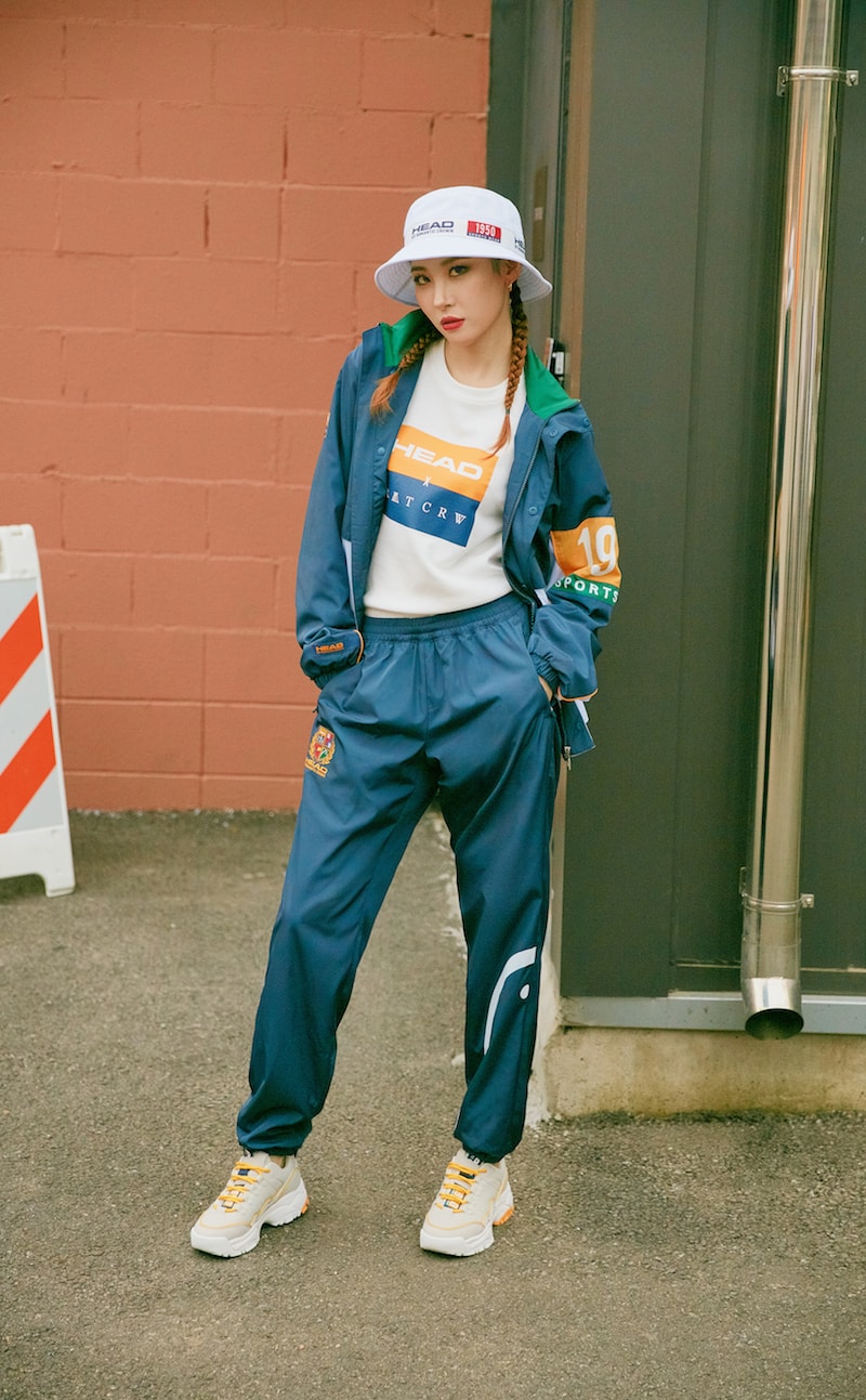 이번 화보에서 선미가 착용한 상품은 국내 대표 스포츠 브랜드 헤드와 스트리트 브랜드 로맨틱 크라운의 콜라보레이션 라인이다. 네오 로맨티시즘을 테마로 한 이번 컬렉션은 1020세대 취향 저격 할 수 있는 다양한 아이템으로 구성 되었다.