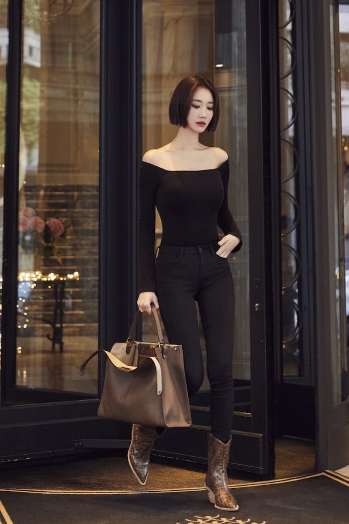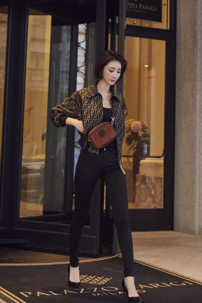 또 짧은 보머 재킷과 스키니 진, 그리고 스틸레토 힐로 자신의 장점인 큰 키와 건강한 몸매를 영리하게 부각시켰는데, 몇 시즌째 인기를 이어오고 있는 로고 플레이가 들어간 FF 보머 재킷은 고급스러우면서도 세련된 느낌을 주기에 충분했다.