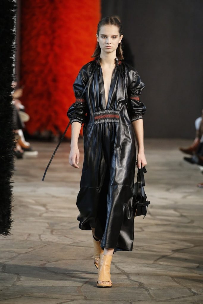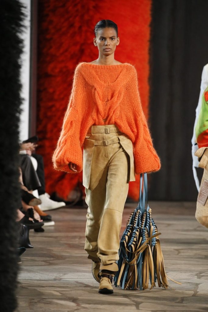 로에베 2019 봄/여름 컬렉션은 Chic Art Explorer를 주제로 하여 소재, 컬러, 실루엣 등에서의 대비가 선명하게 나타났다. 먼저 소프트하고 라운드한 실루엣은 여성적인 면을 부각시키며 로에베 특유의 ‘릴렉스 럭셔리(relaxed luxury)’ 무드를 느낄 수 있다. 또한 블랙 & 화이트의 새틴 소재, 블루 & 핑크 컬러의 깃털 장식, 따뜻한 느낌의 스웨이드 등에서는 로에베의 여성성을 보여준다.