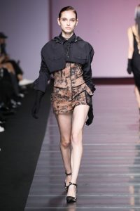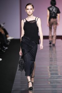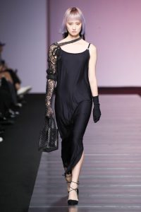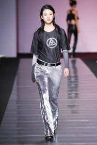 전체적으로 블랙 톤 또는 어두운 색감 위에 새겨진 블랙 패턴이 메탈 소재의 런웨이와 어우러지면서 도시적인 느낌을 한껏 살렸다.