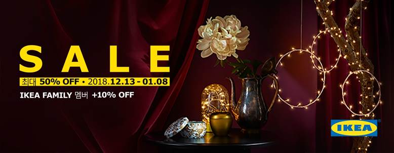 겨울 세일 행사는 다양한 겨울 홈퍼니싱 제품을 12월 13일부터 1월 8일 까지 최대 50%까지 할인된다. 특히, 이케아 패밀리(IKEA FAMILY)멤버에게는 10%의 추가 할인 혜택이 제공된다.