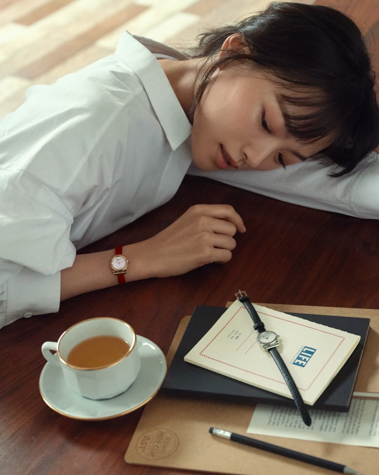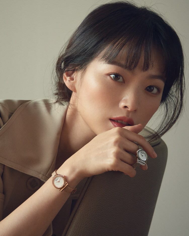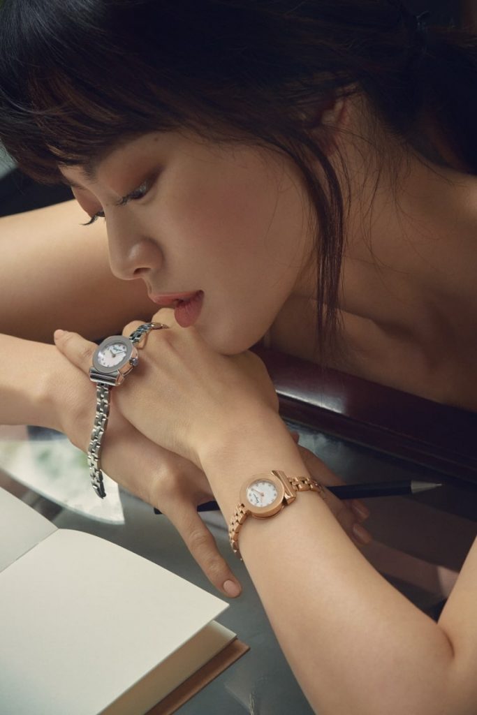 또한 천우희는 톤다운된 핑크, 베이지, 화이트 등 분위기 있는 컬러의 의상에 손목 시계로 포인트를 준 세련된 워치 스타일링을 자신만의 분위기로 소화해 화보의 완성도를 높였다. 특히 페미닌한 무드와 시크함을 동시에 느낄 수 있는 핑크 수트, 화이트 셔츠, 블랙 원피스 등 다양한 스타일의 의상에 고급스러운 로즈 골드&실버 메시 밴드와 케이스가 인상적인 시계, 주얼리를 연상케 하는 브레이슬릿 워치, 컬러가 돋보이는 레더 스트랩 시계를 매치하는 등 스타일리시한 워치 스타일링을 선보여 눈길을 끌었다.