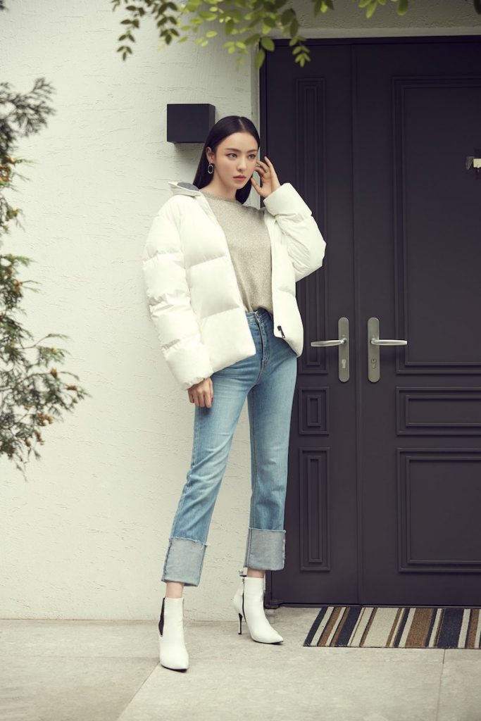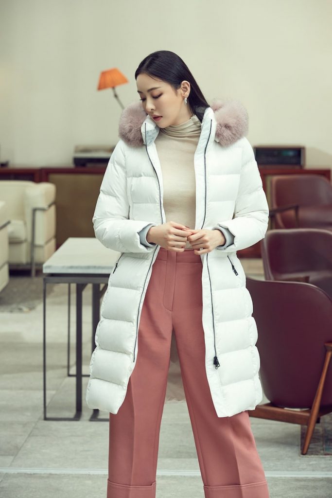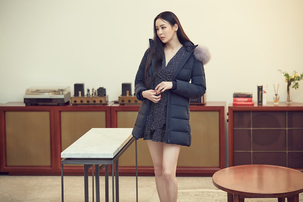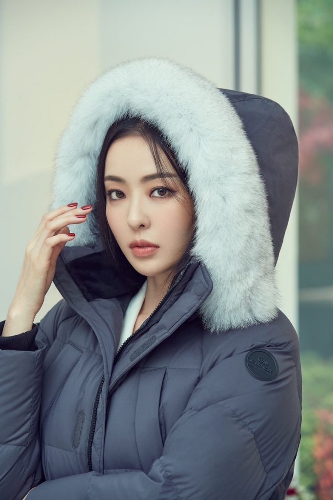공개된 화보 속에서 이다희는 브라운 컬러 톤의 메이크업과 고혹미가 느껴지는 표정으로 독보적인 비주얼의 아웃도어 화보를 완성시켰다. 은은한 화이트 컬러의 풍성한 퍼 트리밍이 돋보이는 나르시스 롱 구스 다운 자켓과 함께 화이트 컬러의 정장을 함께 매치하여 도시적이면서도 세련미 넘치는 다운 자켓 스타일을 연출했다. 반면 슬림한 실루엣과 보라색 컬러의 퍼 트리밍이 멋스러운 아리아 다운 자켓은 여성미가 느껴지는 도트 무늬 미니 원피스와 함께 스타일링하여 트렌디하면서도 사랑스러운 느낌의 아웃도어룩을 선보였다.