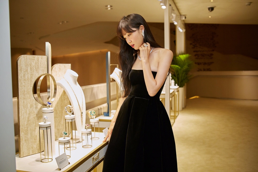 이날, 공효진은 우아한 튜브 톱 블랙 드레스에 피아제의 골든 오아시스 컬렉션의 시머링 선 네크리스와 이어링을 착용해 독보적인 고급스러움을 뽐냈다. 방콕 이벤트에 참석한 공효진은 백여 점이 넘는 눈부신 골든 오아시스 컬렉션 작품들에 대해 높은 관심을 보였다.