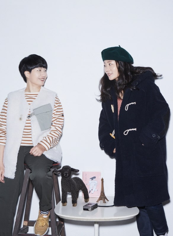 공개된 화보에서 선보인 ‘리사이클 다운 점퍼’와 ‘리사이클 폴리 플리스’는 자연 친화적인 제작 과정을 통해 만들어진 제품이다. 다운 점퍼의 보온 충전재는 재생 가능한 침구류에서 모은 다운을 재가공한 리사이클 다운이며, 플리스 자켓은 가공 과정에서 자켓 한 벌당 83개의 폐기된 PET병을 재활용해 지속 가능한 패션을 실현했다.