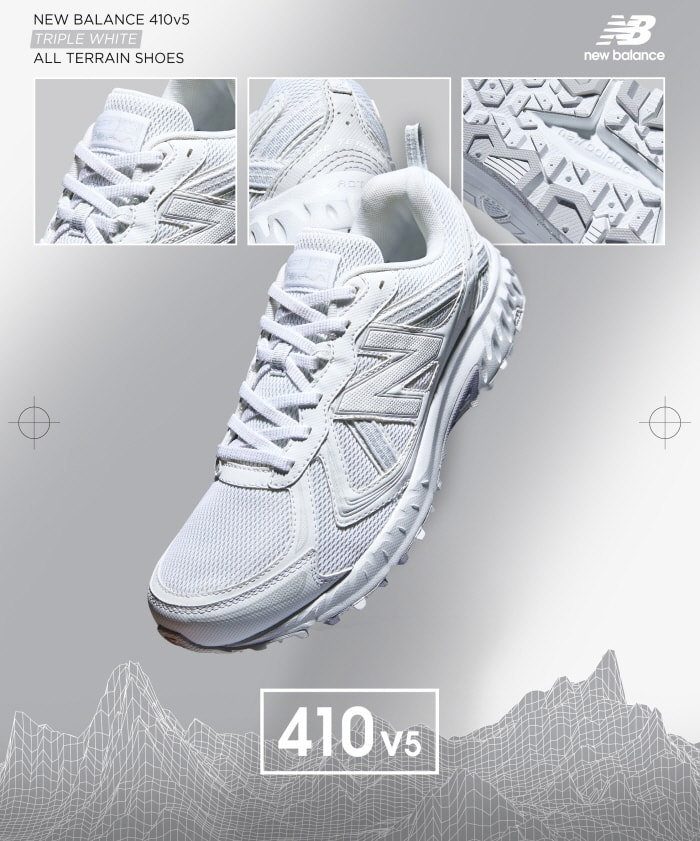 이번 트레일화 ‘MT410v5’는 아웃도어 뿐만 아니라 라이프 스타일에서도 활용할 수 있는 트리플 베이지, 트리플 화이트, 트리플 그레이 컬러들로 선보였다.