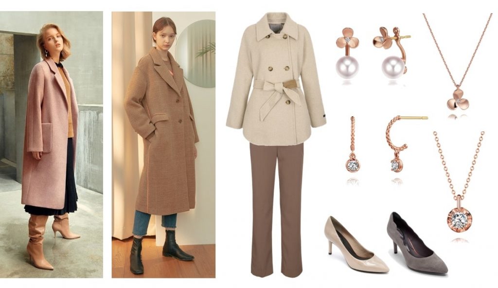 화사한 파스텔 톤의 핑크 컬러 롱 코트나 잘록한 허리를 강조해주는 벨티드 재킷으로 여성스러운 분위기를 한층 더 높여주고 꽃 모티브가 돋보이는 페미닌한 무드의 진주 귀걸이로 포인트를 주면 얼굴을 더욱 빛나게 밝혀줄 수 있다.