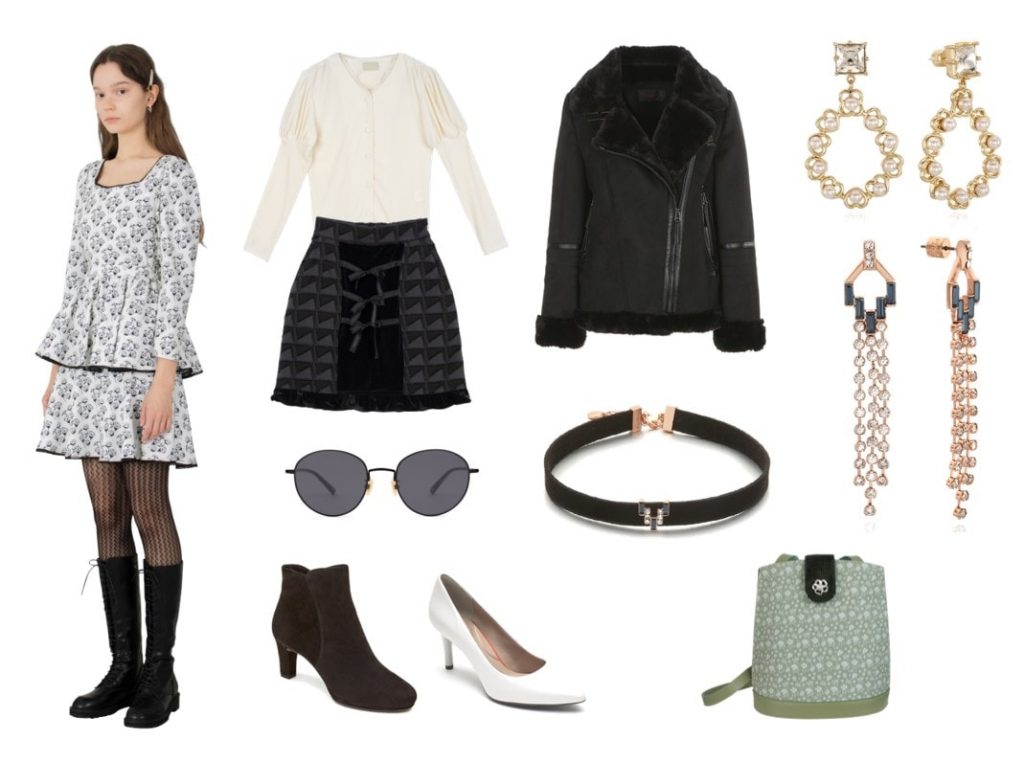 사랑하는 연인과 로맨틱한 데이트를 계획 중이라면 화려하면서도 러블리한 스타일을 연출해보자. 리듬감 넘치는 러플이 돋보이는 장미 패턴의 원피스에 무스탕 점퍼를 매치해 시크하면서도 사랑스러운 무드의 여친룩을 연출할 수 있다.