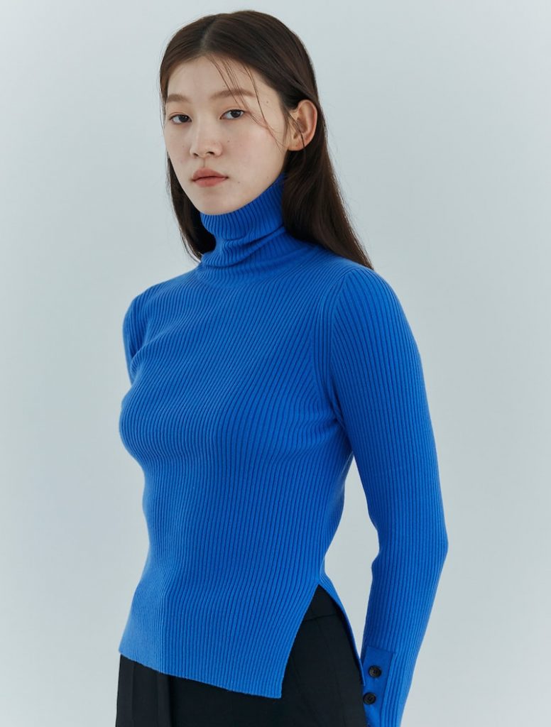 미니멀 영 컨템포러리 브랜드 구호플러스(kuhoplus)는 부드러운 촉감을 주는 블루 컬러의 터틀넥 니트를 선보였다. 구호플러스의 터틀넥 니트는 슬림한 실루엣이 깔끔하며, 사이드 슬릿, 슬리브 버튼 등 디테일로 차별적인 느낌을 줬다.