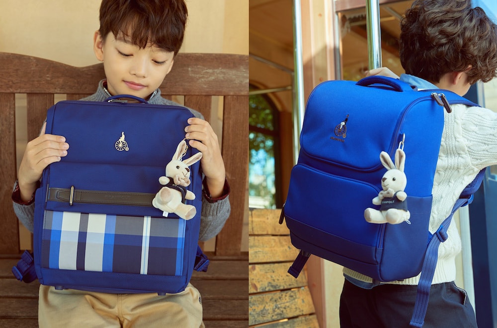 빈폴키즈의 책가방은 블루 컬러 바탕에 자전거 자수, 체크 패턴, 레터링 로고 등 빈폴키즈만의 디자인을 적용해 클래식하고 트렌디한 느낌을 동시에 줬다. 전년 대비 무게를 20% 이상 낮췄으며, 충격 흡수/무게 분산 기능, 통기성, 착용감을 높여 아이들의 건강을 고려했다.