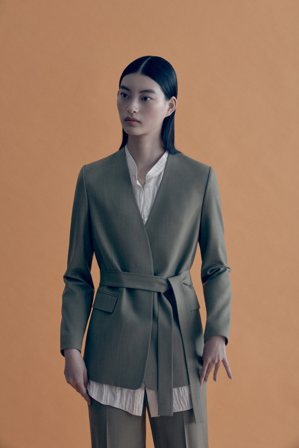 매력적인 카키 컬러와 미니멀한 슬림 실루엣의 칼라리스(Collarless) 재킷, 착용감이 우수한 에어 저지(Air Jersey) 소재의 시크한 블랙 코트 등 고급스러운 아우터뿐 아니라, 더블 브레스트 재킷과 플리츠 스커트를 레이어드한 듯한 원피스 등 아코디언 주름을 포인트로 한 독특한 상품도 선보였다.
