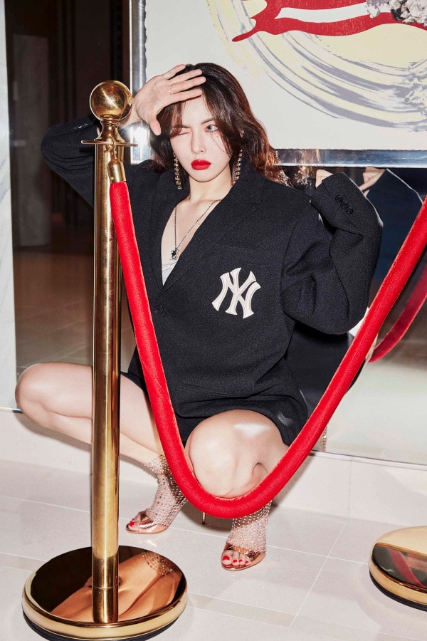 MLB는 테일러드 자켓 출시를 기념해 현아와 함께한 화보를 공개했다. 공개된 화보 속 현아는 테일러드 자켓을 오버사이즈로 착용해 과감한 하의 실종 패션을 완벽하게 소화해내며 ‘인간 MLB’다운 독보적인 매력을 발산했다.