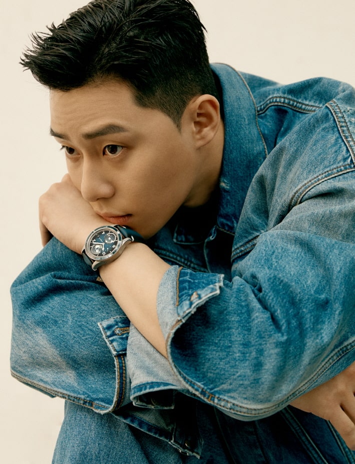 에스콰이어 5월호 표지에 등장해 박서준의 청청 패션에 포인트를 준 시계는 몽블랑의 ‘1858 지오스피어 블루’로, 얼음과 빙하를 연상 시키는 딥 블루 색상의 매력적인 다이얼이 특징인 제품이다. 다이얼의 블루 컬러와 아라비아 숫자의 화이트 컬러가 조화롭게 어우러져 세련된 분위기를 자아내며, 높은 가독성을 자랑한다. 42mm의 케이스는 가벼운 소재의 티타늄으로 만들어 편안한 착용감을 강화했다.