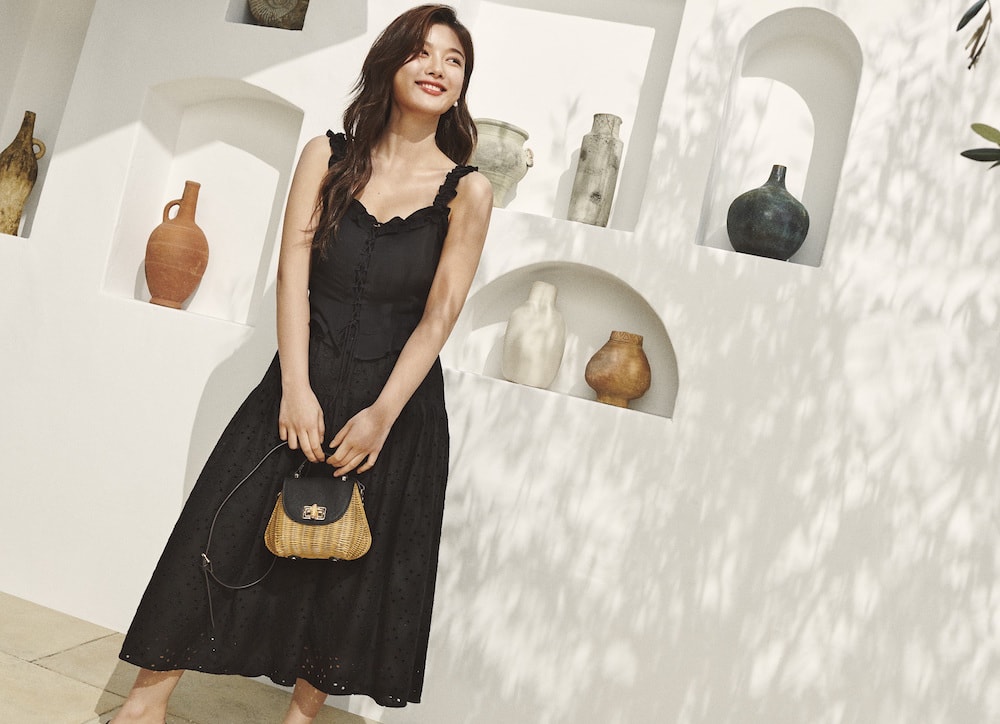 캠페인 화보에서 김유정은 특유의 환한 미소로 밝은 여름의 에너지를 느끼게 한다. 린넨 소재의 화이트 셔츠와 버뮤다 팬츠를 착용한 사진에서는 심플하면서도 깔끔한 룩을 연출해 보였으며, 햇빛을 연상하게 하는 밝은 옐로우 컬러의 맥시 드레스에는 과감하게 볼드한 이어링을 매치해 휴양지의 느낌을 더했다.