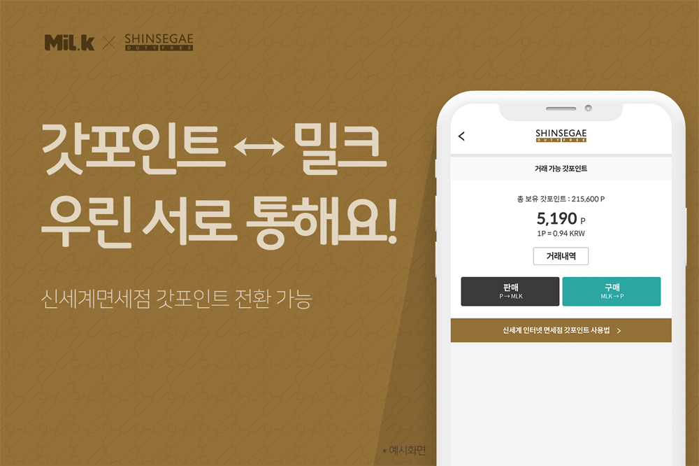 이번 연동으로 밀크 플랫폼이 제공하는 최초의 완전한 포인트 통합 서비스로도 눈길을 끈다. 신세계면세점 갓포인트를 보유한 고객들은 밀크 앱에서 밀크 코인(MLK)으로 변환 후 디지털 자산 거래소를 통해 투자 또는 현금화가 가능하며 반대로 밀크 코인(MLK)으로 갓포인트를 구매해 신세계면세점 서비스 이용 시 현금처럼 사용할 수도 있다.