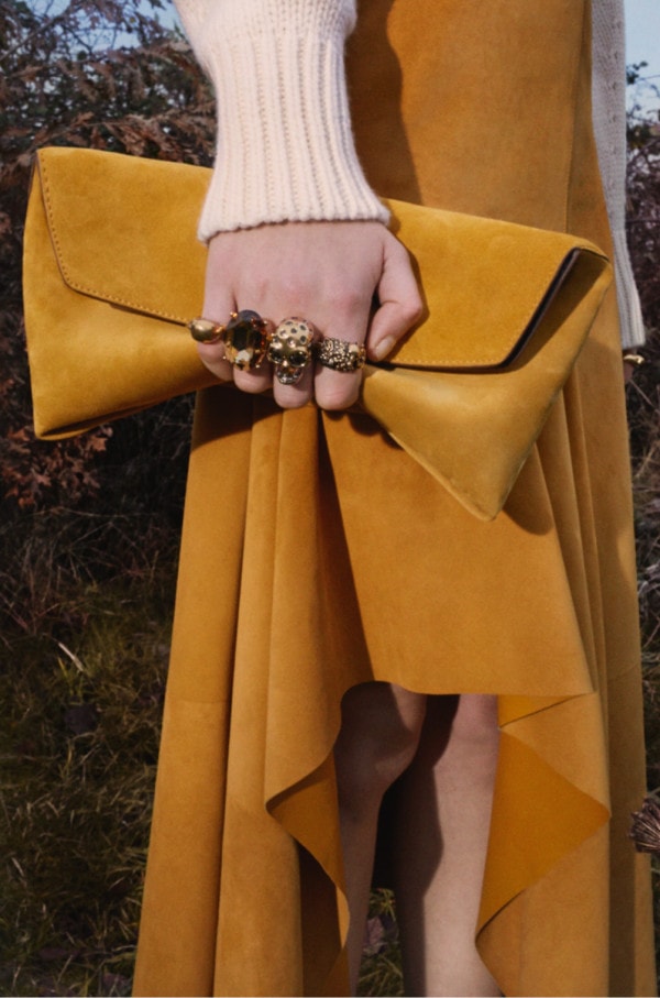 뿐만 아니라, 이번 컬렉션을 통해 새롭게 공개한 ‘소프트 파우치’는 부드러운 가죽 소재에 시그니처 스컬 손잡이로 우아함을 더했으며 맥퀸의 ‘주얼 스컬 선글라스’ 역시 다양한 컬러감으로 만날 수 있다.