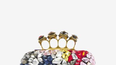 전반적인 컬렉션에서 찾아볼 수 있는 빅토리아 시대의 회중시계에서 영감을 받은 T-바 디테일은 이번 컬렉션의 시그니처 모티프다.