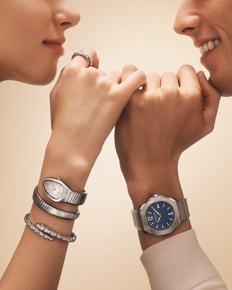 시대를 초월하는 아이코닉한 불가리 워치는 남성과 여성 모두를 위한 디자인으로, 사랑의 영원한 힘을 담아내고 있다. 주얼리의 영혼이 담긴 워치인 세르펜티 투보가스(Serpenti Tubogas)는 메종의 상징적인 두 가지 요소를 결합하여 탄생하였다: 유려한 브레이슬릿은 현대적이고 유연한 투보가스 코일로 손목을 감싸며, 독특한 곡선형 케이스는 전설적인 뱀의 머리를 형상화한다.
