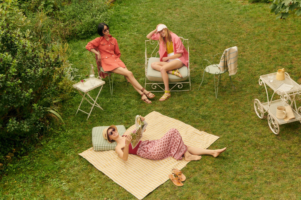 먼저 넓은 소매와 기하학적인 칼라가 특징인 기모노 재킷은 올 여름 필수 아이템이다. 오픈 스타일로 가볍게 걸치거나, 벨트를 매어 실루엣을 강조하는 등의 높은 활용도를 자랑한다. 재활용 폴리에스터로 제작되었으며, 아티초크와 토마토처럼 채소밭을 연상시키는 컬러로 출시된다. 또한, 이번 시즌 면과 리넨 소재의 깅엄 체크 패턴을 적용해 다채로운 스타일을 선보인다.