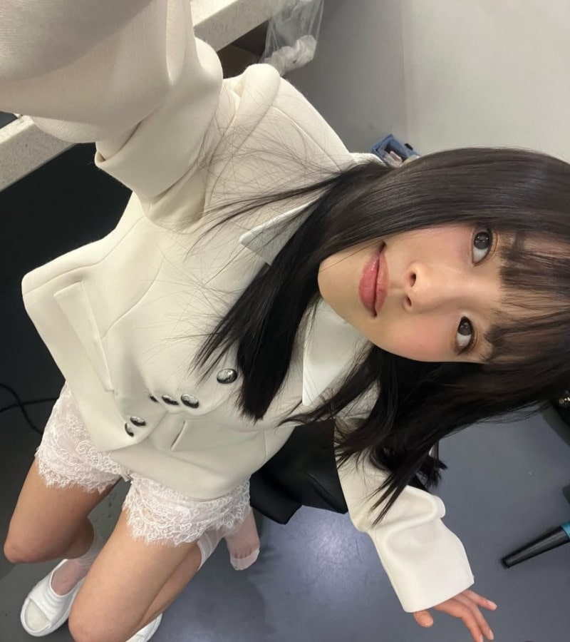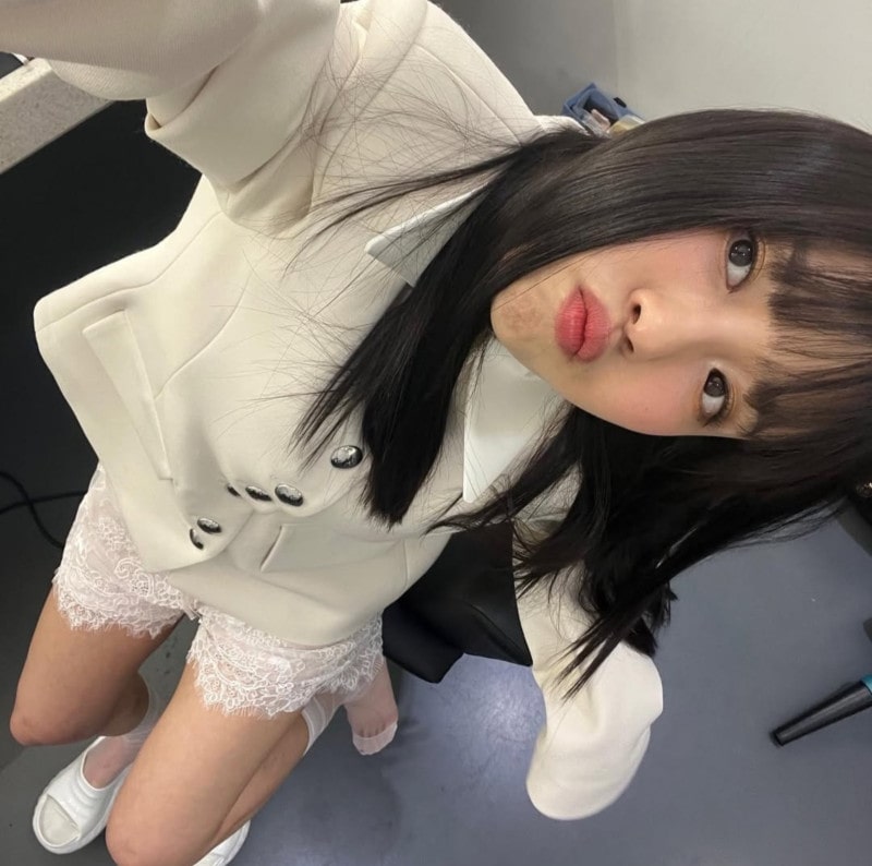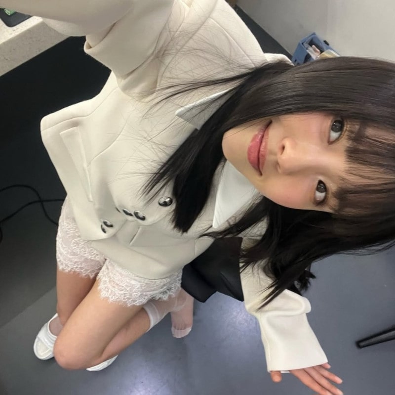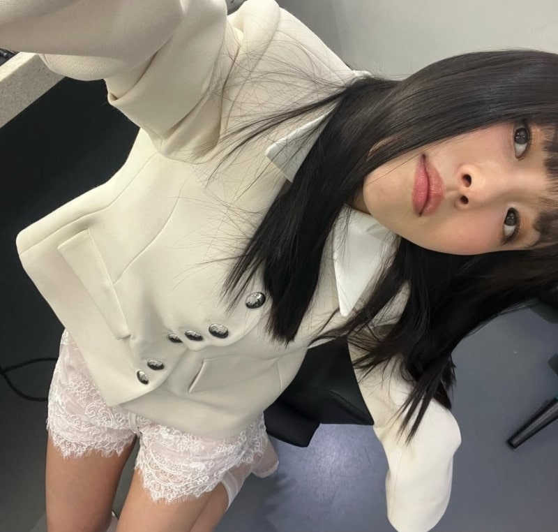 배우 고민시는 심플한 디자인의 크롭 화이트 재킷과 레이스 쇼츠를 매치해 모던하면서도 로맨틱한 룩을 완성했다.
