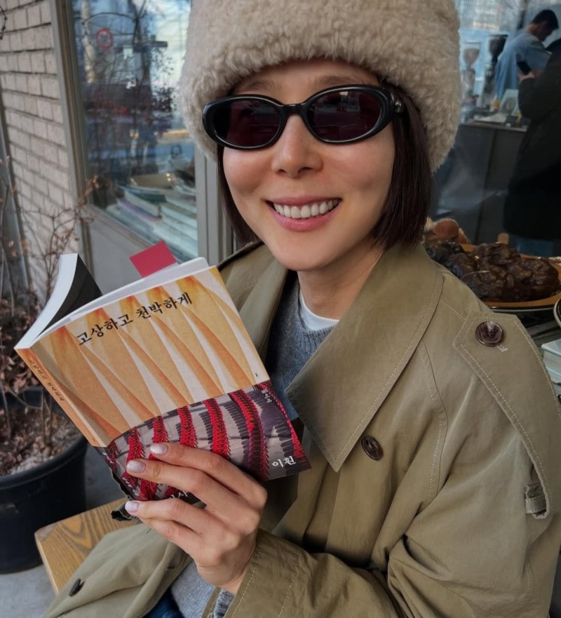 김나영은 따뜻한 퍼 모자와 선글라스를 매치해 트렌디한 룩을 완성했다. 니트 비니나 따듯한 울 소재의 머플러 등을 함께 매치하는 것도 좋은 선택이다.