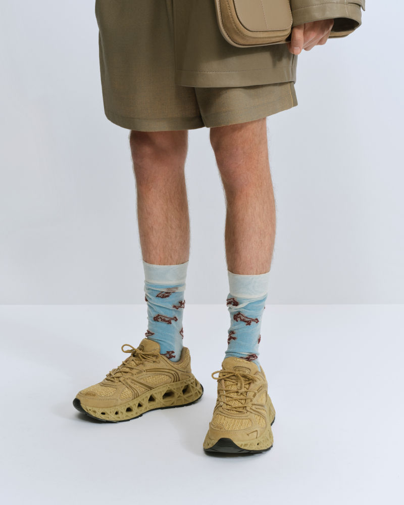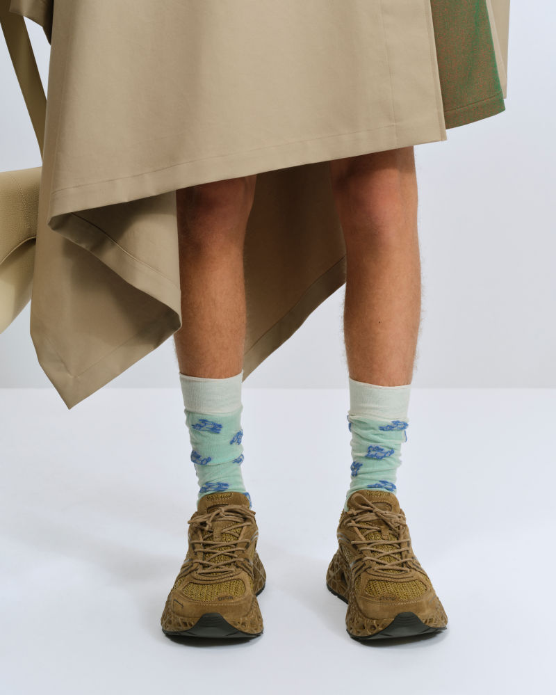 디올의 B35 NXXT 스니커즈는 슈즈의 밑창을 강조하기 위해 까나쥬의 조화로운 메쉬 구조를 사용하여 볼륨감 있는 오픈 워크 버전을 완성하였으며, 미래지향적인 감각을 보여주는 동시에 스타일리시하고 편안한 착용감을 더했다.