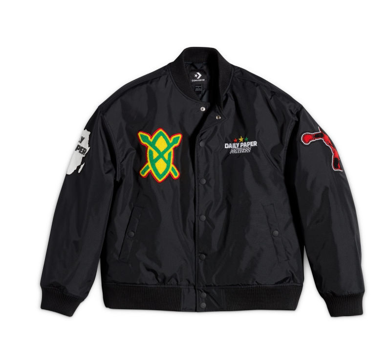 특히 데일리 페이퍼 스타디움 재킷은 오른쪽 가슴 부분과 소매에 더해진 커스텀 시닐 패치와 왼쪽 가슴 부분에 콜라보레이션 로고가 새겨진 새틴 스티치 자수를 새겨 대담한 패치 디자인과 재킷 전반적으로 범아프리카적인 컬러를 사용하여 디테일 지향적인 시각과 아프리카 감성을 담아 문화와 스타일을 하나로 결합하였다.