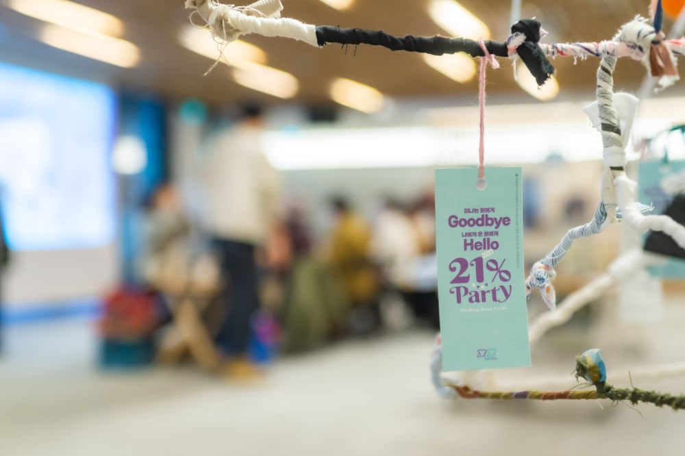 ‘21%파티’는 옷장 속 안 입는 옷의 평균 비율이 21%라는 다시입다연구소 설문 조사 결과를 기반으로 만든 행사명으로, 사 놓고 입지 않거나 더 이상 손이 가지 않는 옷을 서로 바꿔 입고 직접 수선해 입자는 지속가능한 의생활 실천 환경 캠페인이다.
