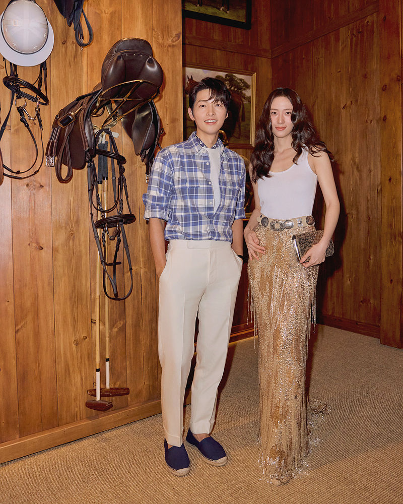 랄프 로렌 코리아 앰버서더 정수정(크리스탈)은 랄프 로렌 컬렉션 2025 스프링 시즌의 화이트 탑과 임벨리시 스커트, 콘초 벨트, RL 888 미니 크로스바디 체인 백으로 우아한 스타일을 완성했으며, 배우 송중기는 랄프 로렌 퍼플 라벨 2025 스프링 시즌의 아이코닉한 플레드 패턴 셔츠와 네커치프, 트라우저를 스타일링해 햄튼에서 영감을 받은 클래식한 매력을 뽐냈다.