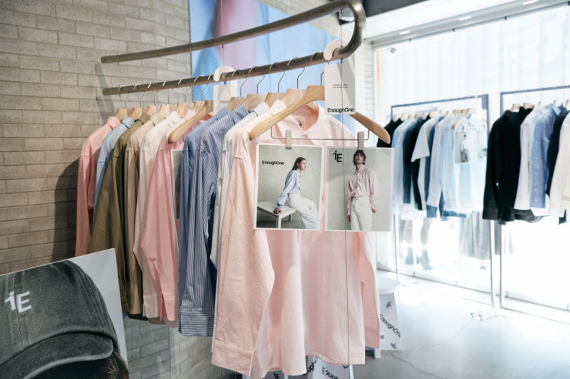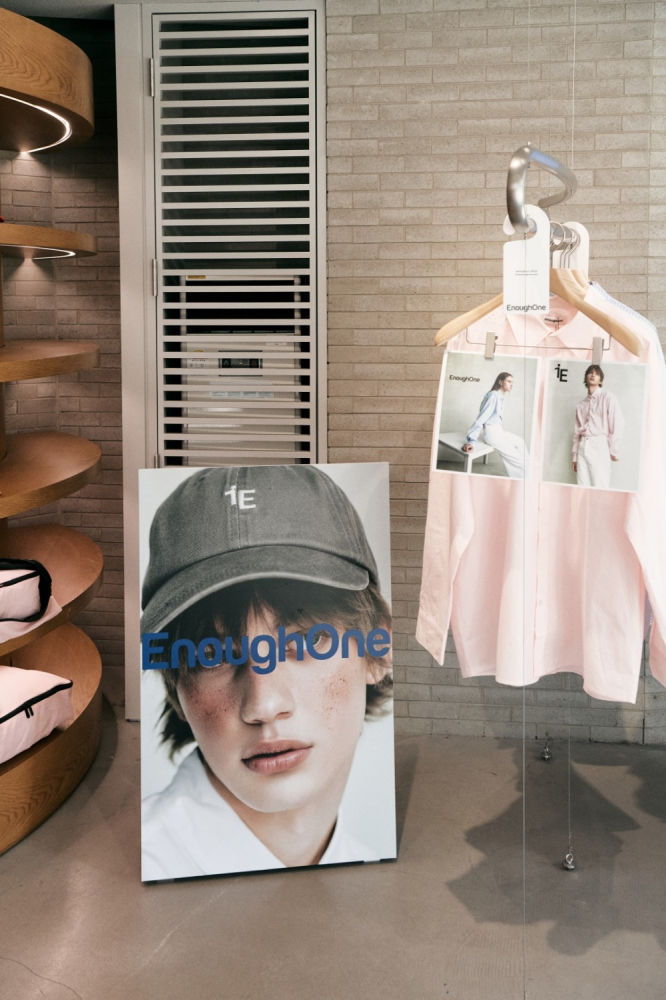 성수동에 위치한 톰그레이하운드 성수점에서 열린 이너프원의 팝업스토어에서는 이너프원이 제안하는 ‘하나만으로 충분한’ 스타일을 직접 경험할 수 있는 시그니처 아이템들을 확인 가능하다.