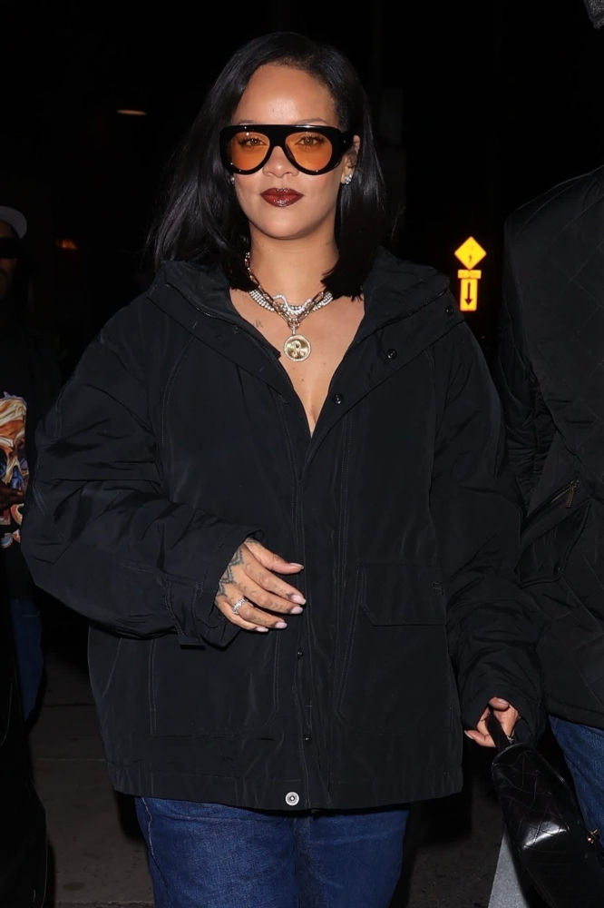 리한나는 캘리포니아 로스앤젤레스에서 1950년대 무드가 느껴지는 볼드한 파일럿 스타일 선글라스를 착용했으며, 프론트 메탈 림과 사이드 스포일러, 템플 부분의 시그니처 메탈 리본 디테일이 돋보인다.