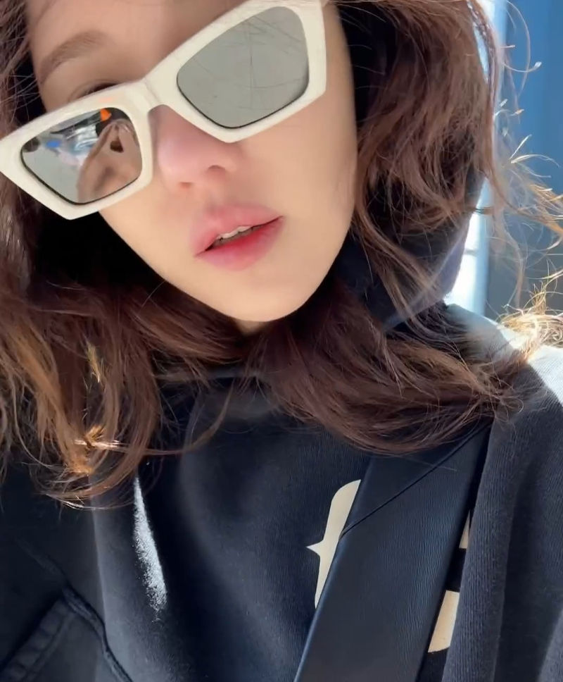 이지아는 평범한 후디지만, 크롭 기장의 아이템을 초이스해 허리라인을 살짝 보이게 연출함으로써 캐주얼한 무드 속에서도 여성스러운 매력을 잘 살린 룩을 완성했다. 후디의 드롭 숄더와 박시한 핏은 여유로운 실루엣으로 스트릿 감성을 업 시켜 주고, 함께 매치한 독특한 쉐입의 선글라스는 룩을 더욱 개성있게 완성해 준다.